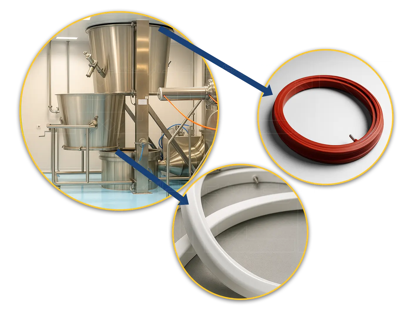 گسکت والف دارگسکت های درب مخزن ساخت گسکتهای والف دار برای برندهای Cos.Mec، FPD،GLATT Alliance، GEA ، DGM و ..